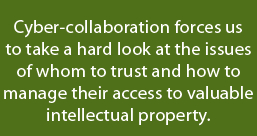 Put another way, cyber-collaboration forces us to take a hard look at the issues of whom to trust and how to manage their access to valuable intellectual property. It also creates a need to apply legally binding and regulatory-compliant cyber-signatures to the electronic documents involved in day-to-day business, clinical development, and regulatory submissions.