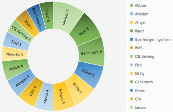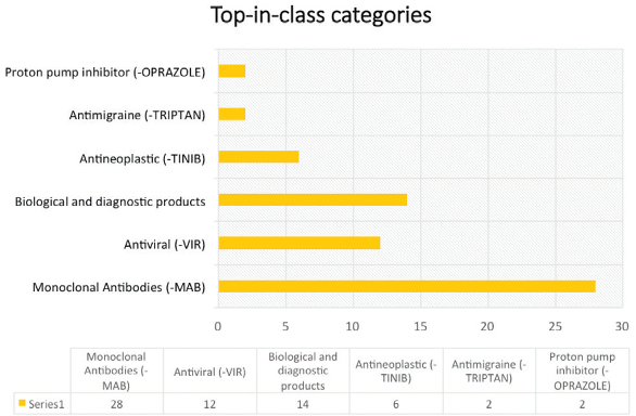Figure 5. Top pharmaceutical companies receiving NDA approvalsTop-in-class categories